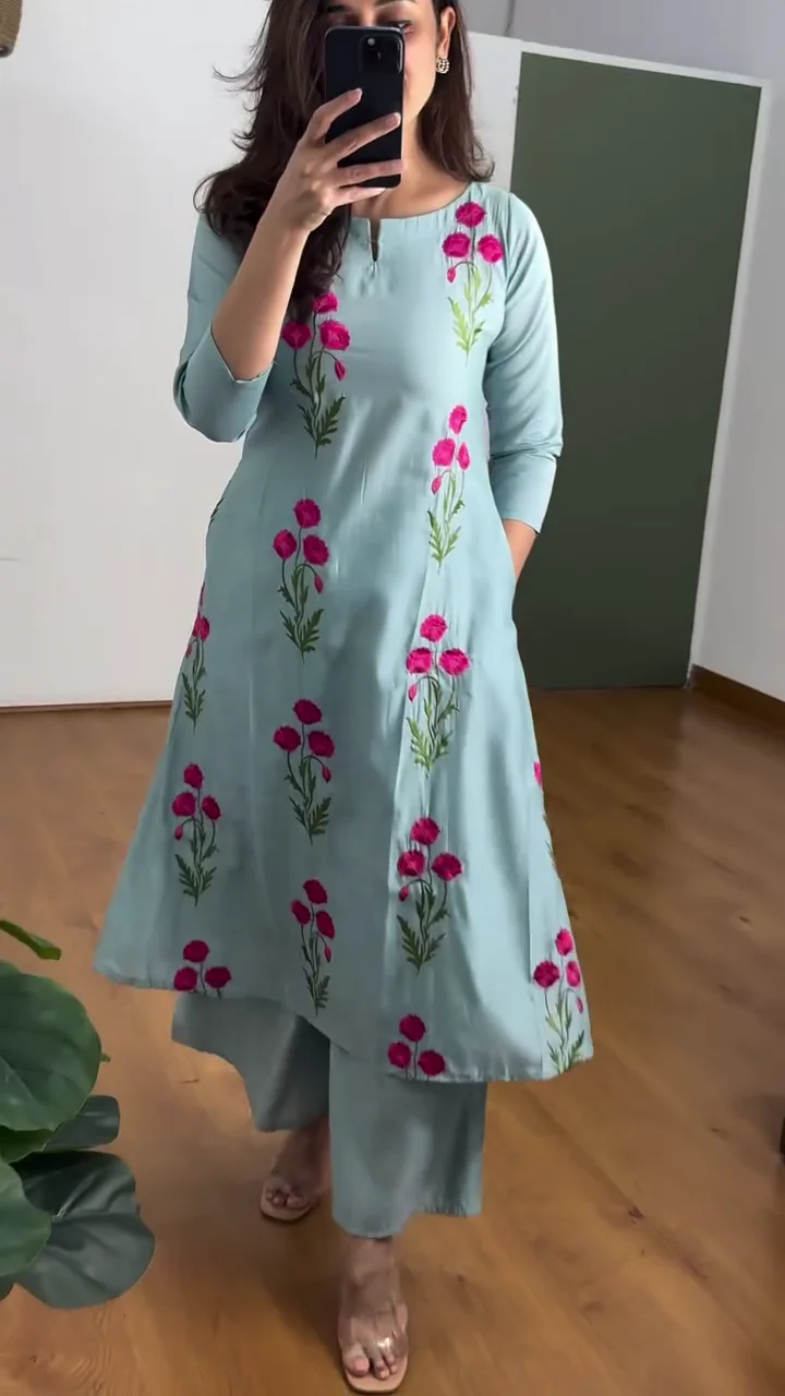 Floral Charm Embroidered Kurta – Grace in Bloom????
